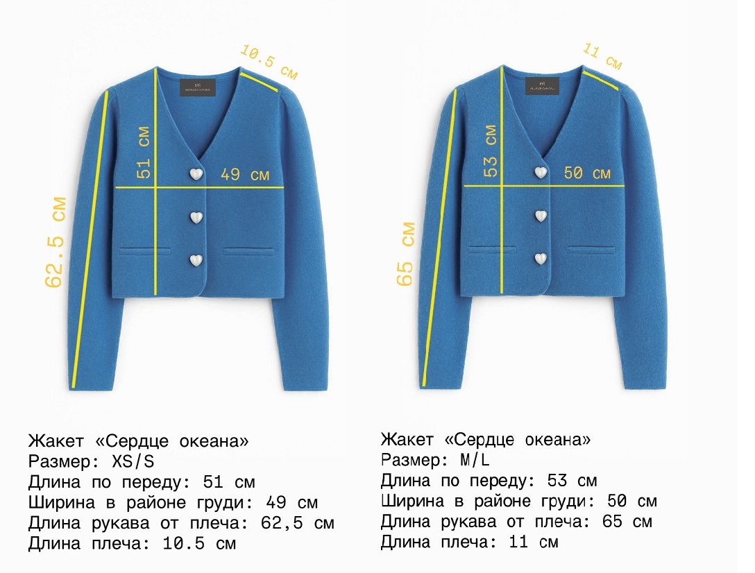 Элегантный жакет из мягкого теплого трикотажа альпаки в насыщенном голубом цвете. Идеальный выбор для тех, кто ценит комфорт и стиль. Этот уютный жакет дополнен милыми пуговицами в форме сердечек, добавляющими образу нежности и романтики. Сочетайте жакет с юбкой мини "Океан" из трикотажа Альпаки в идентичном цвете.